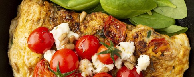 Omelet met spek en kerstomaatjes in de multicooker